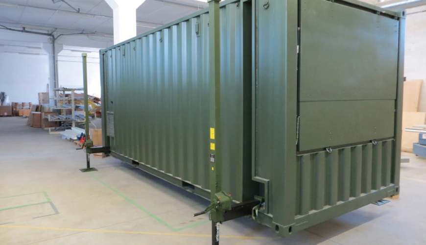 The communication container ensures functionality in crisis situations around the clock. It contains up to five workstations, all equipped with technology and tools tailored to the workers’ needs and roles. Additionally, it supports up to four different network levels, all pre-installed and ready for plug-and-play operation by the operator.